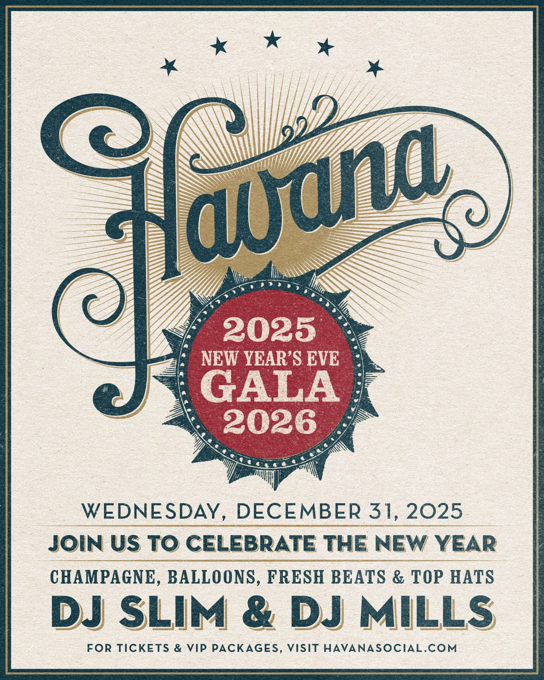 For inquiries regarding New Year’s Eve VIP packages, private events and booth reservations please fill out the form below and submit to our Reservations Desk . You may also request to be added to our mailing list from this page. Individual tickets for NYE at Havana may be purchased here. Come ring in 2026 with us!